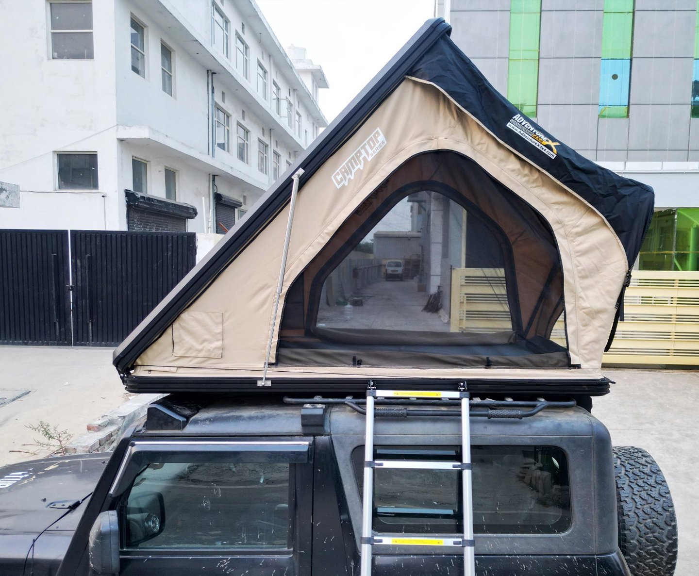 Safe & Effortless Access: A 150 kg-rated telescopic ladder with reinforced hooks provides solid footing on any surface. Precision-engineered metal lock latches seal the tent securely for travel, no matter how rough the terrain gets.