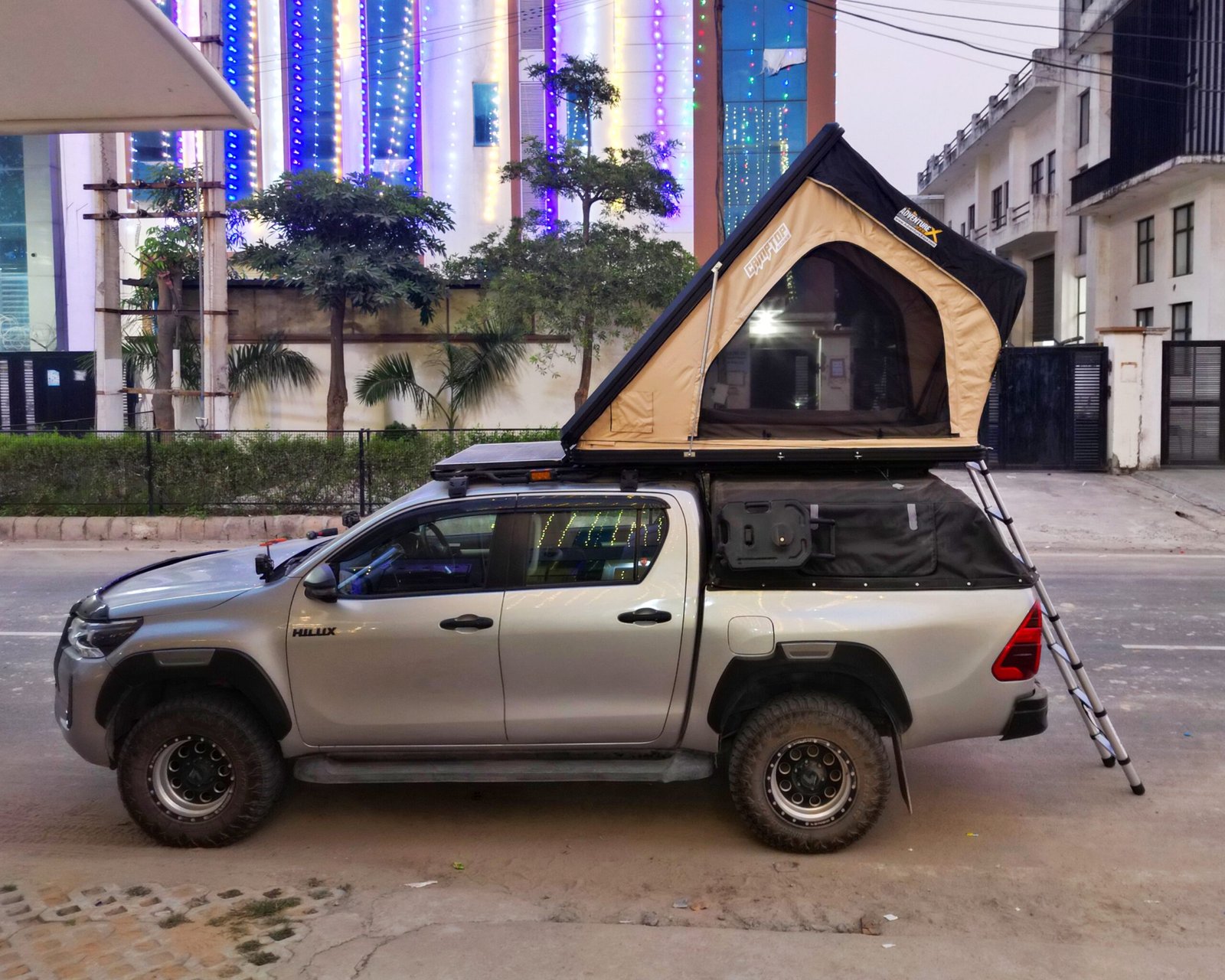 Luxury Inside the Wild: A high-density thermal-control mattress rests on an anti-condensation base mat, keeping you warm in Ladakh nights and cool during desert camps. Integrated USB-powered LED lightbar brightens the interior, and a roof-mounted organiser keeps your gear neatly stowed and instantly accessible.