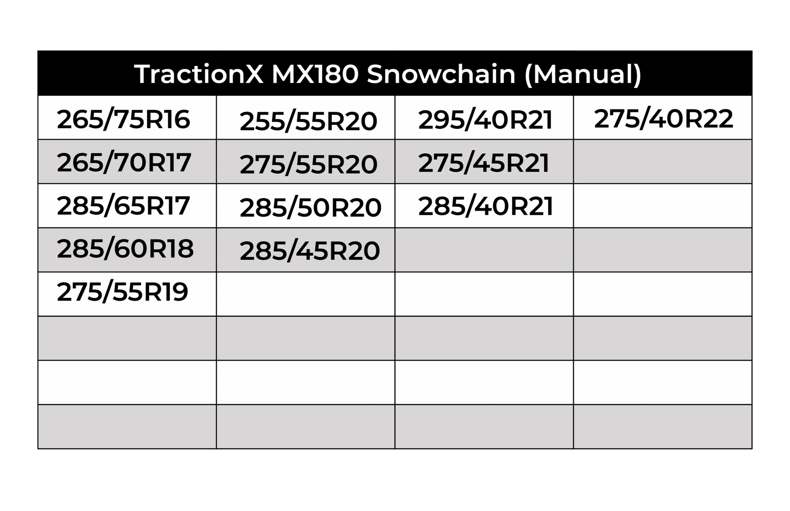 Choose TractionX MX180 for unbeatable winter traction, durable performance, and quick, hassle-free installation when you need it most.